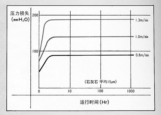 不同粒徑粉體其過濾風(fēng)速及溫度變化同阻力損失的關(guān)系(見表三、表四)。