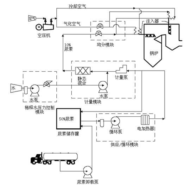 SNCR系統(tǒng)工藝流程示意圖